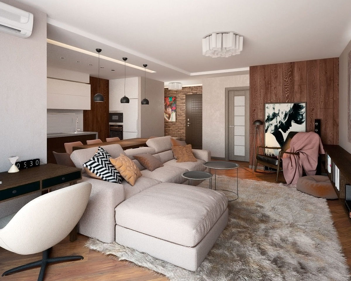 Заказчики этого проекта — молодая пара. Они мечтали о современном, удобном и уютном жилье, где можно отдохнуть от суеты и насладиться общением друг с другом. Хотелось что-то очень мягкое, теплое и уютное.