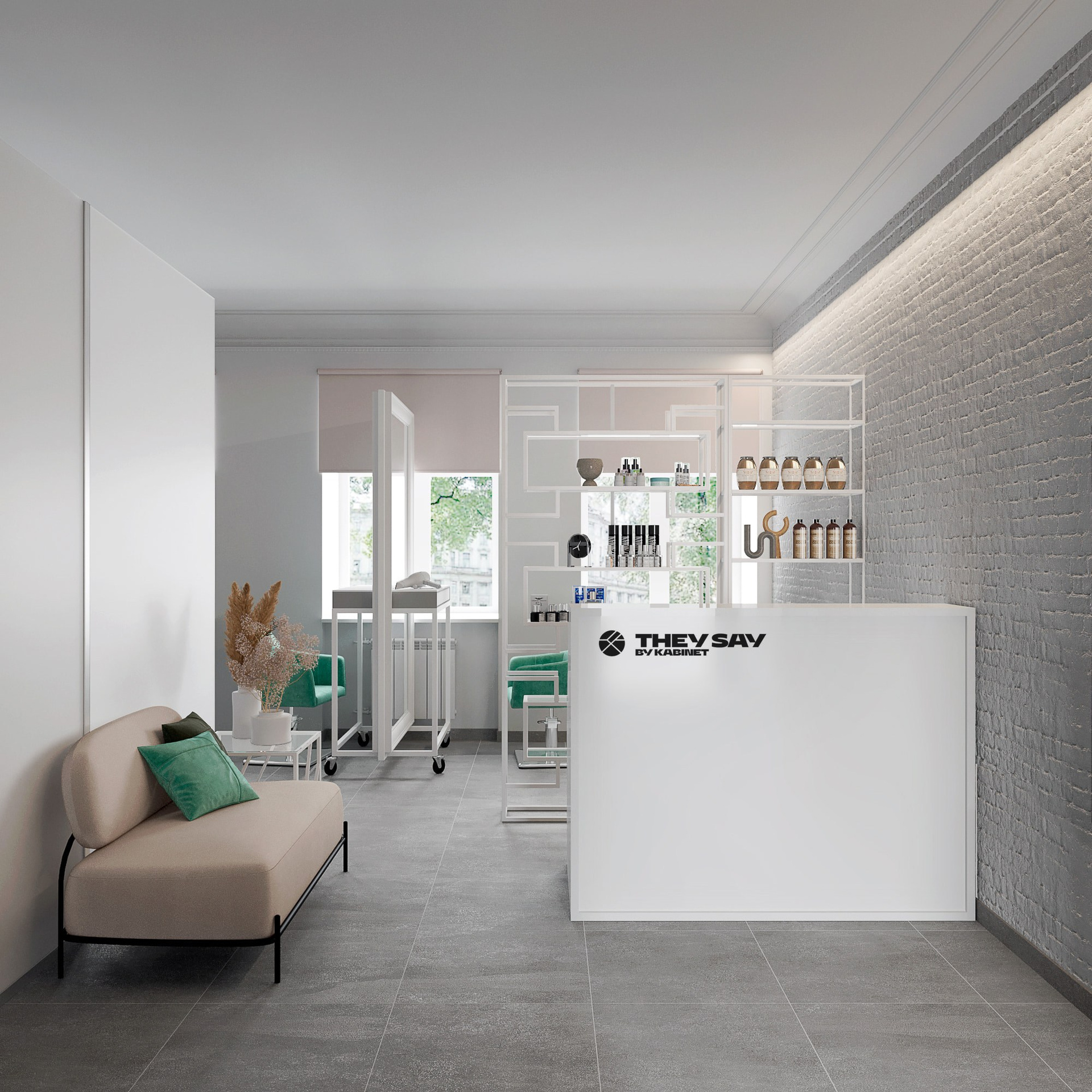 Наша задача состояла в том, чтобы используя по максимуму существующее оборудование, трансформировать интерьер. Облегчить дизайн, зонировать пространство таким образом, чтобы каждому посетителю салона было комфортно.