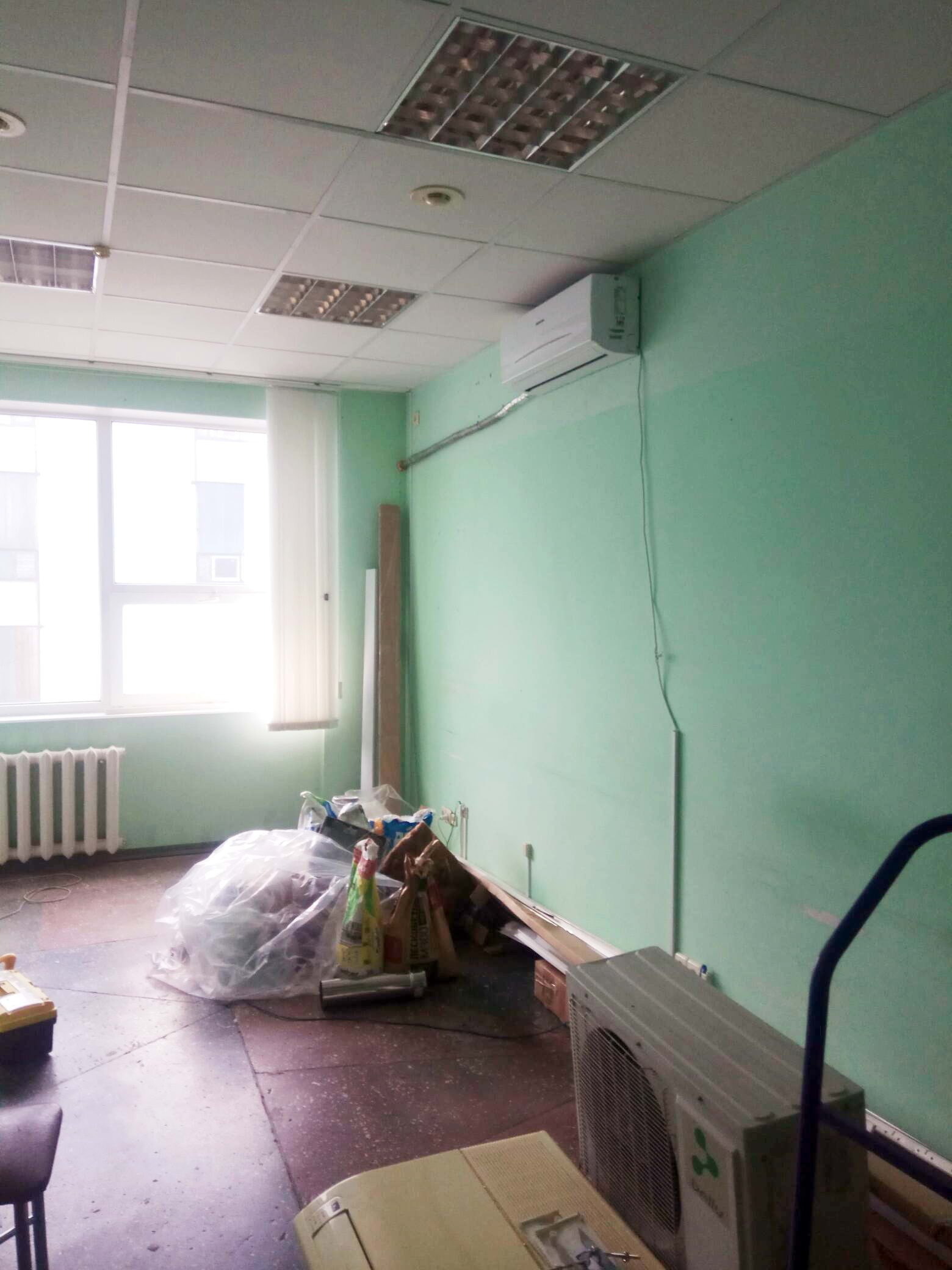 Все старые отделочные материалы заменили на новые. Кварцвиниловая плитка в качестве напольного покрытия — очень хороший вариант для коммерческих помещений. Она бюджетнее керамогранита, а по износостойкости ничем ему не уступает. Мы выбрали кварцвинил с покрытием «под бетон».
