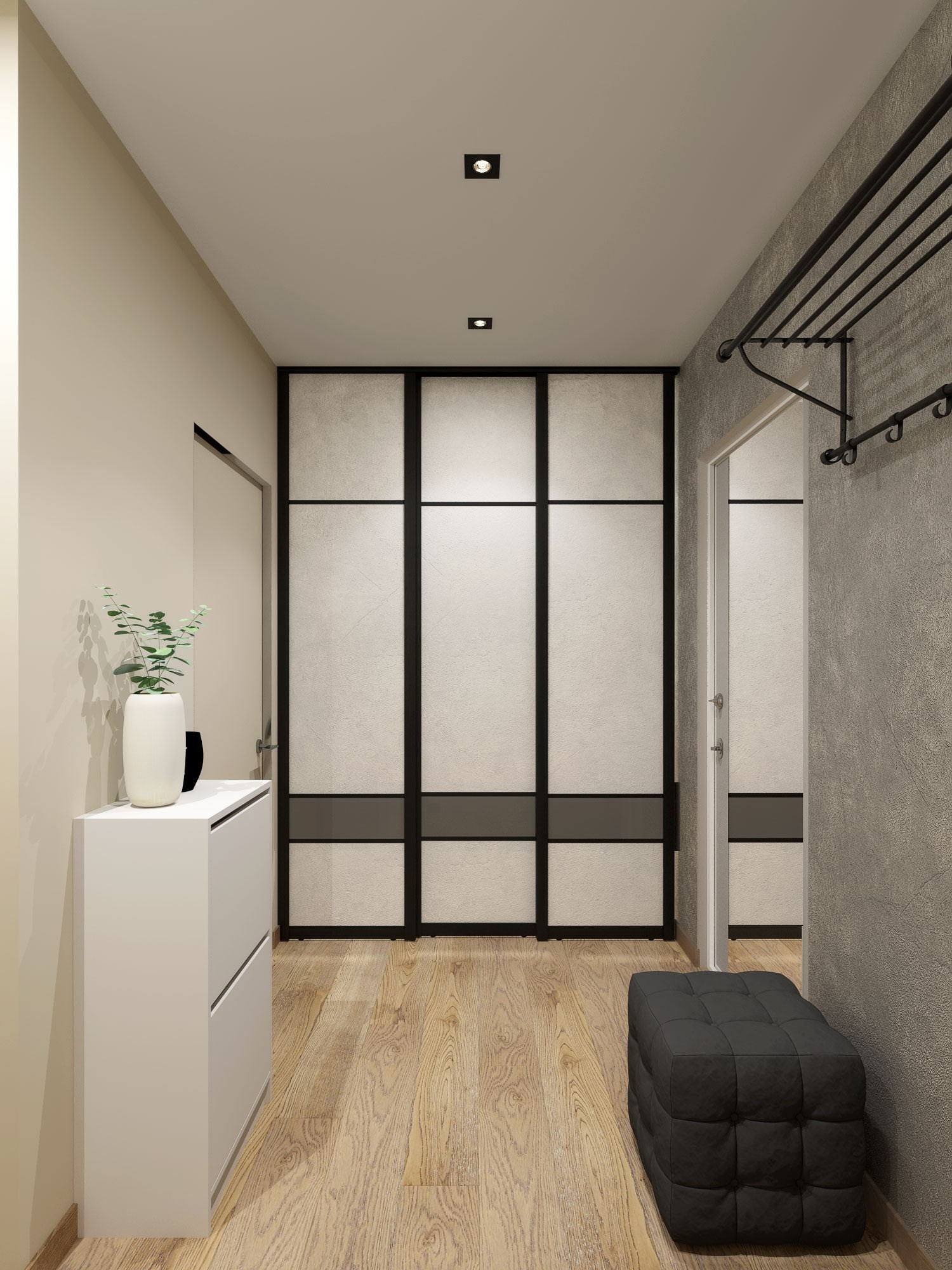 Те же приемы были использованы и для прихожей.