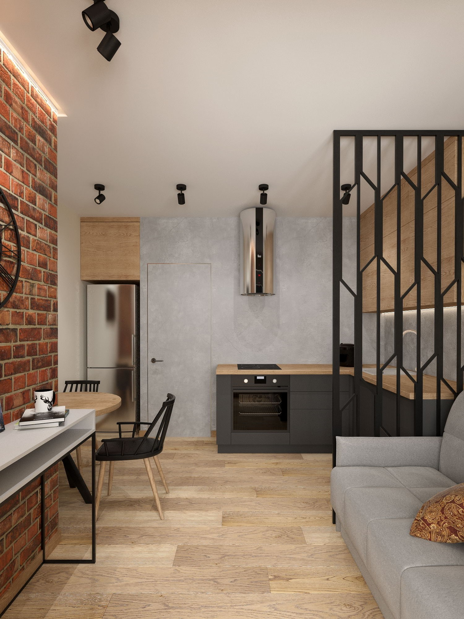 В качестве примеров дизайна рассматривали интерьеры в стиле лофт, сканди и минимализм. Клиентам очень нравились материалы, которые там используются, особенно красный кирпич. А также нравилась лаконичность и простота этих стилей.