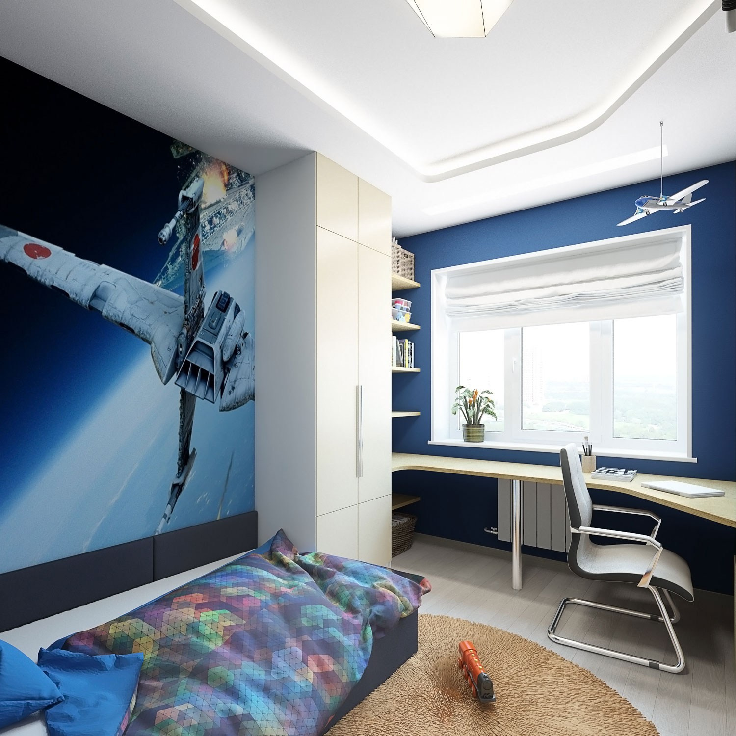 Для сына решили сделать необычную комнату. Мужской половине семьи очень нравится космическая тематика, особенно фильм Звездные войны, и поэтому немного мотивов из этой космической саги мы привнесли в интерьер детской.