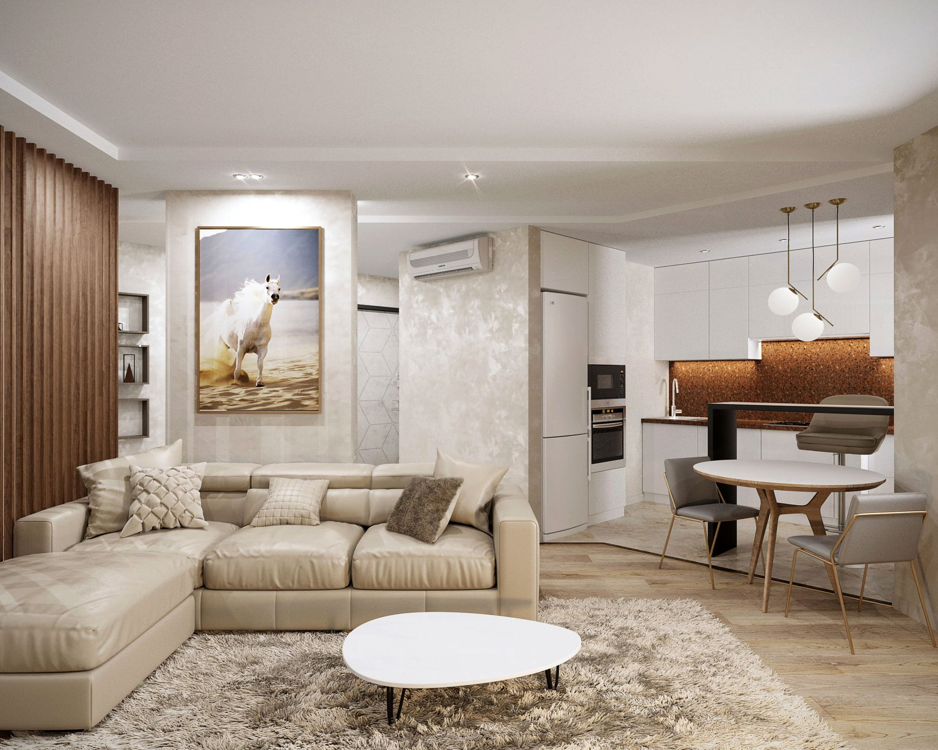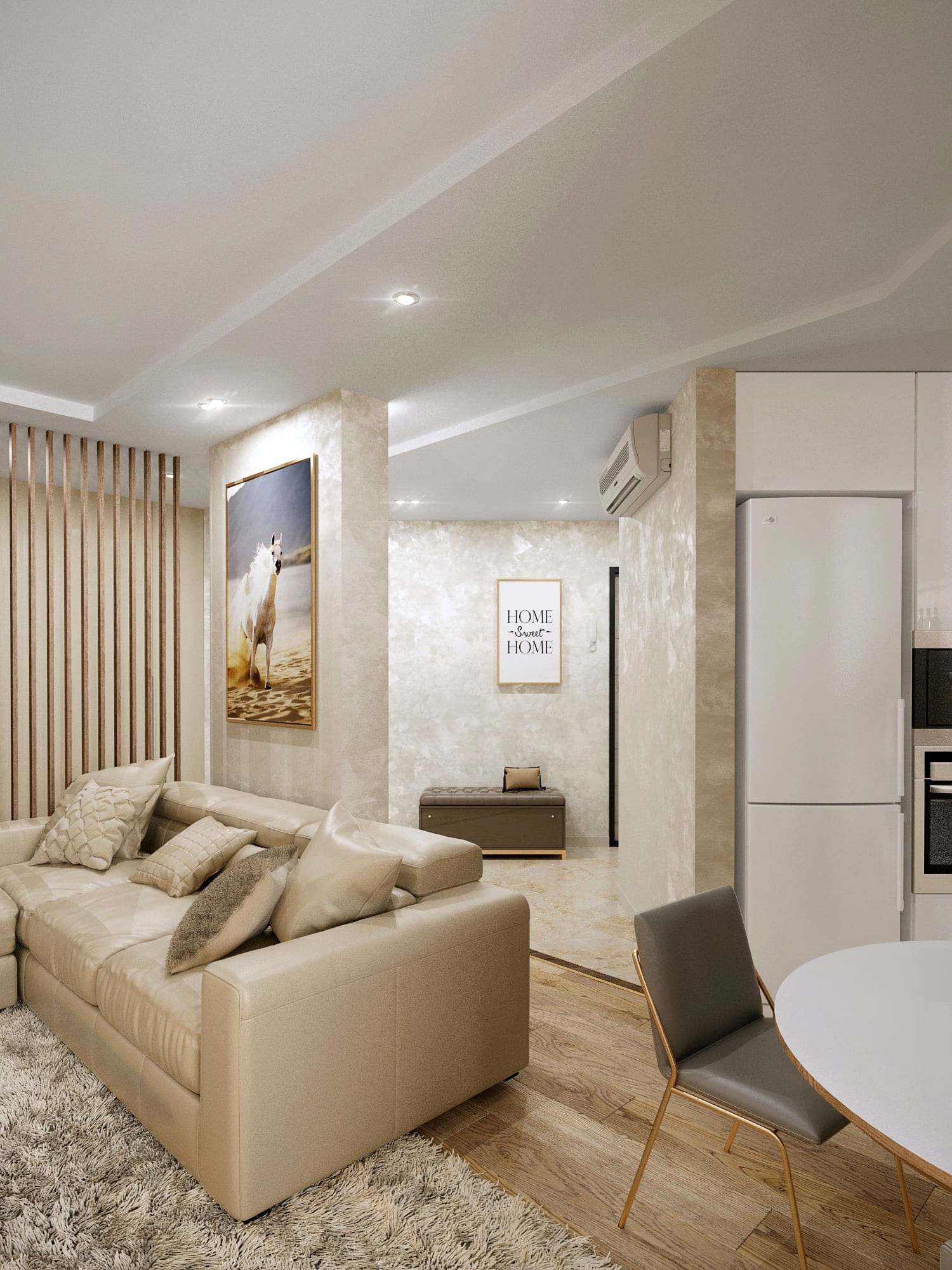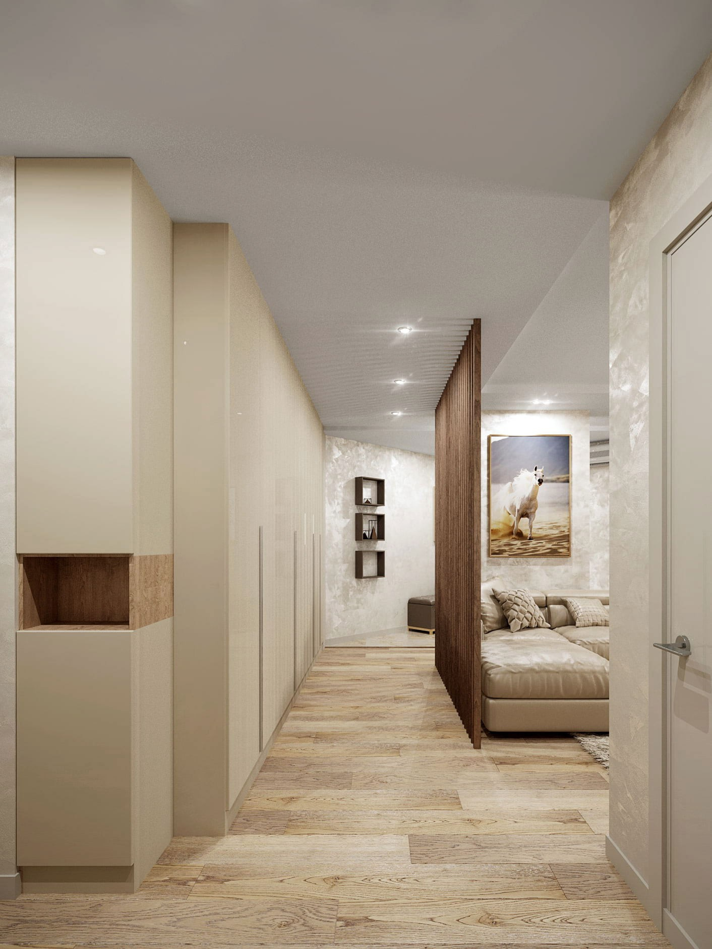 Светлая и мягкая цветовая гамма, натуральные фактуры и единый стиль для всего пространства. Этот уютный и теплый интерьер мы создавали для семьи с двумя дочками. Здесь они будут отдыхать и спокойно проводить время вместе.