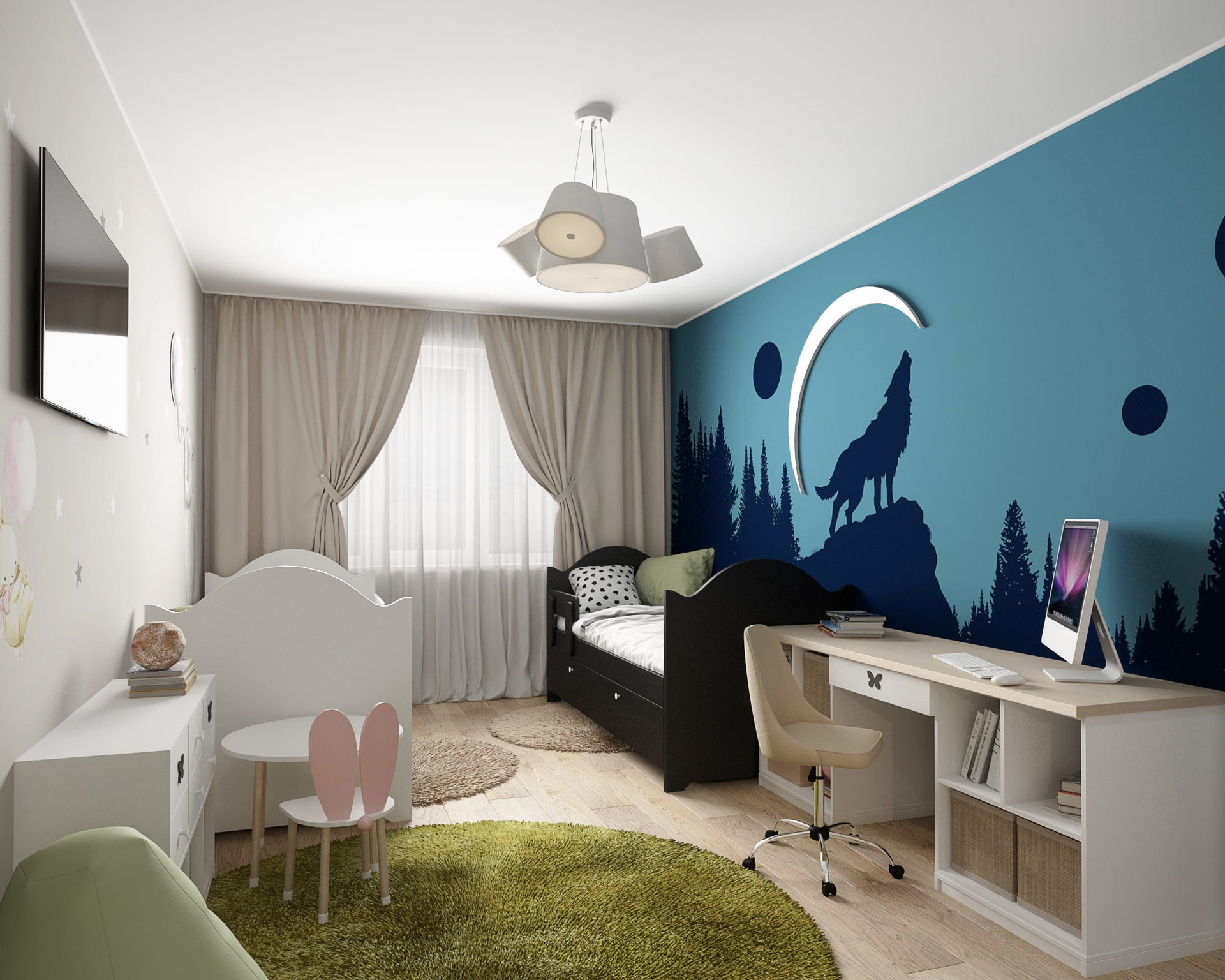 В комнате будут жить две дочери разного возраста — дошкольница и подросток. У них очень разные вкусы и интересы и было важно сделать интерьер, который понравится им обеим.